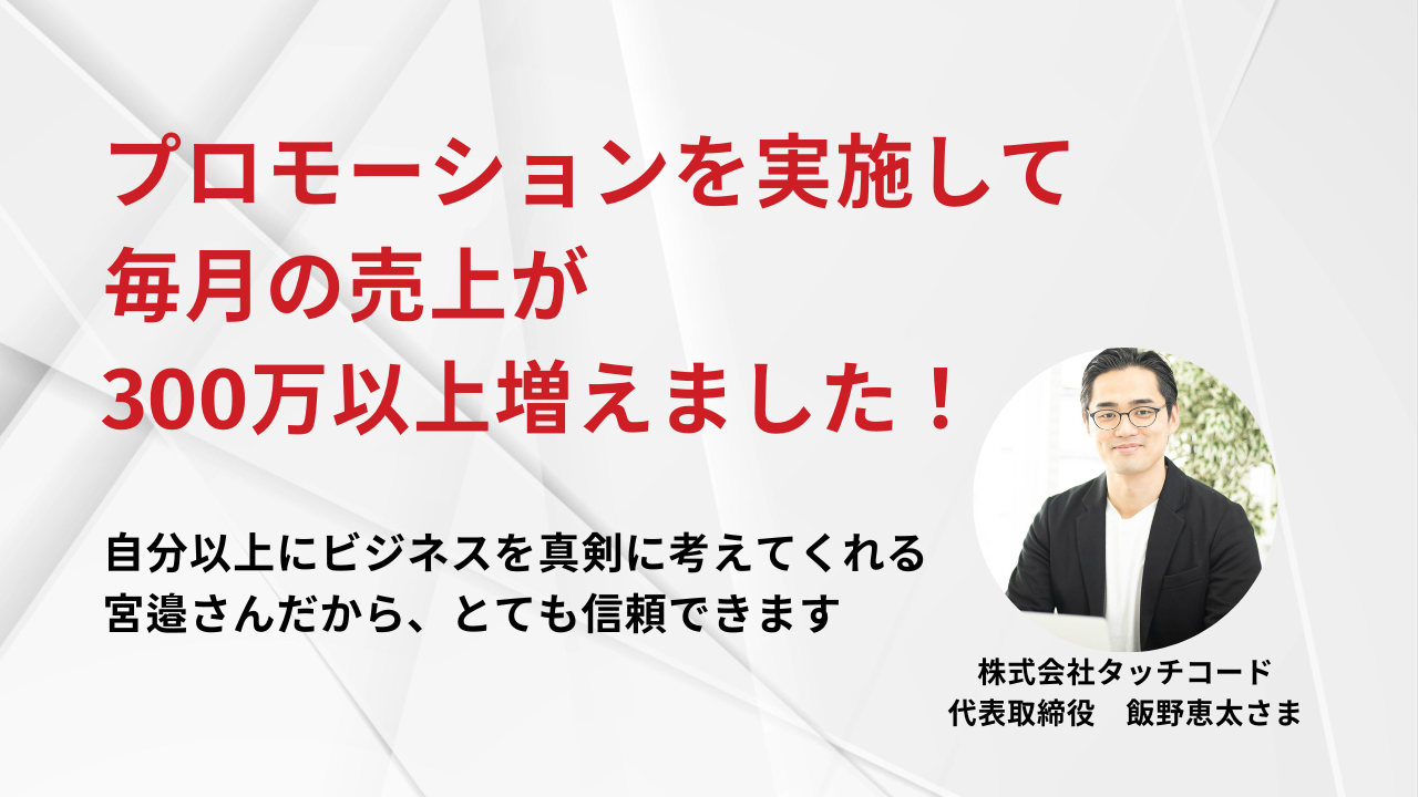 宮邉さんに依頼してから、毎月の売上が300万以上増えました