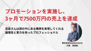 うちはサブスク商品をメインに取り扱っているのですが、宮邉さんのプロモーションの売上だけで月300万円は売上がアップしました。自分以上にビジネスを真剣に考えてくれる宮邉さんだからこそ、とても信頼できます。特に意図を汲み取る力があり、こちらが1言えば、10理解してくれるので、いつもとても助かっています。